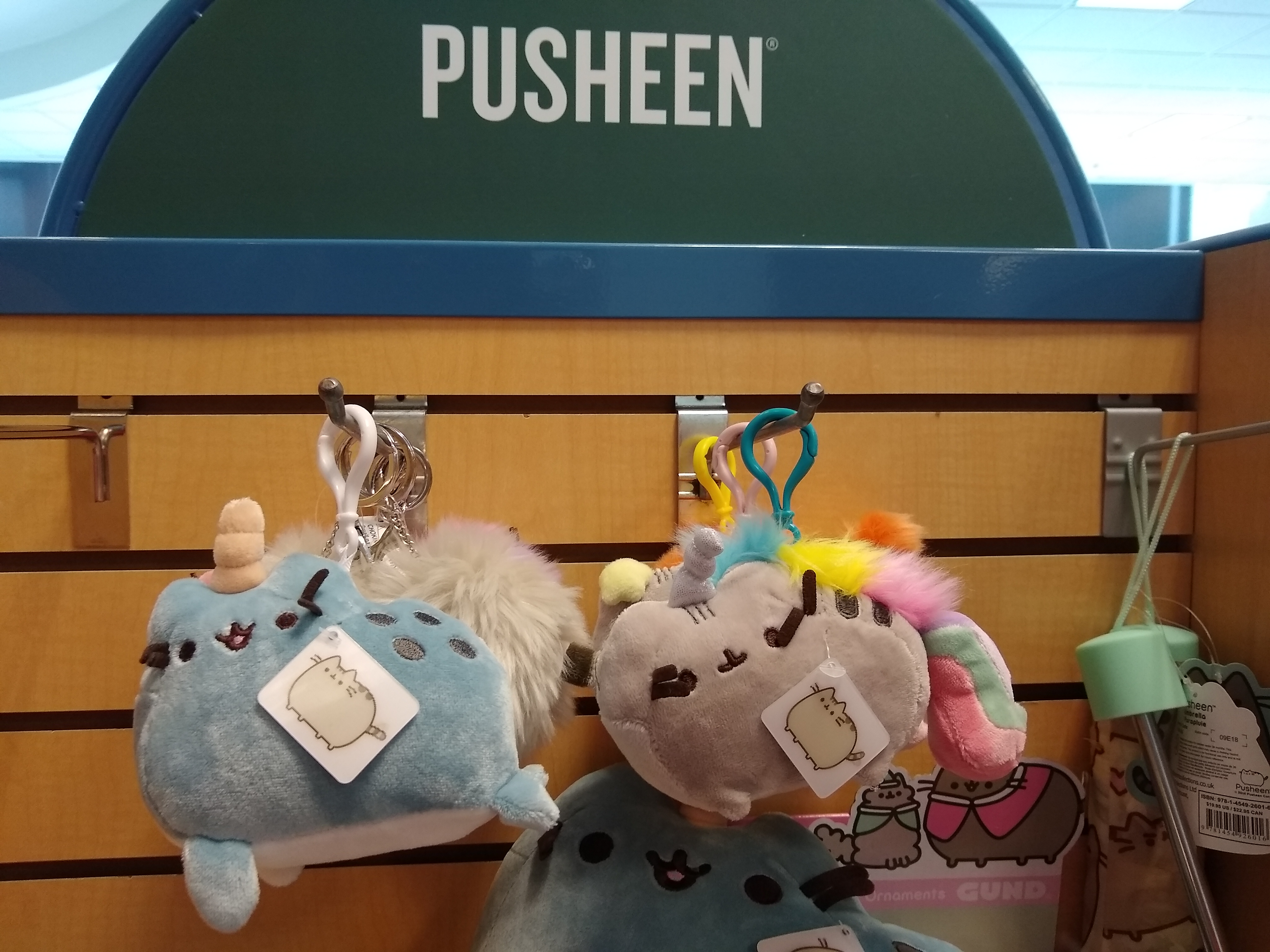 Note the pearlescent and purply narwhal items stacked next to ye olde rainbow unicorn on the middle and bottom shelves.